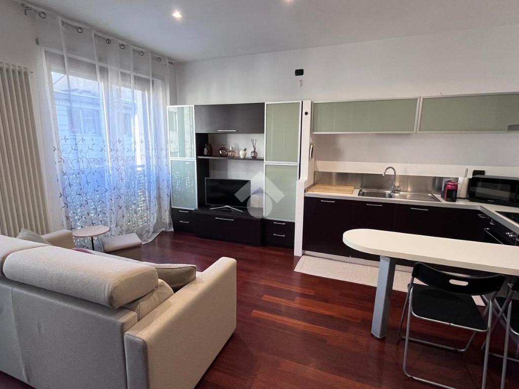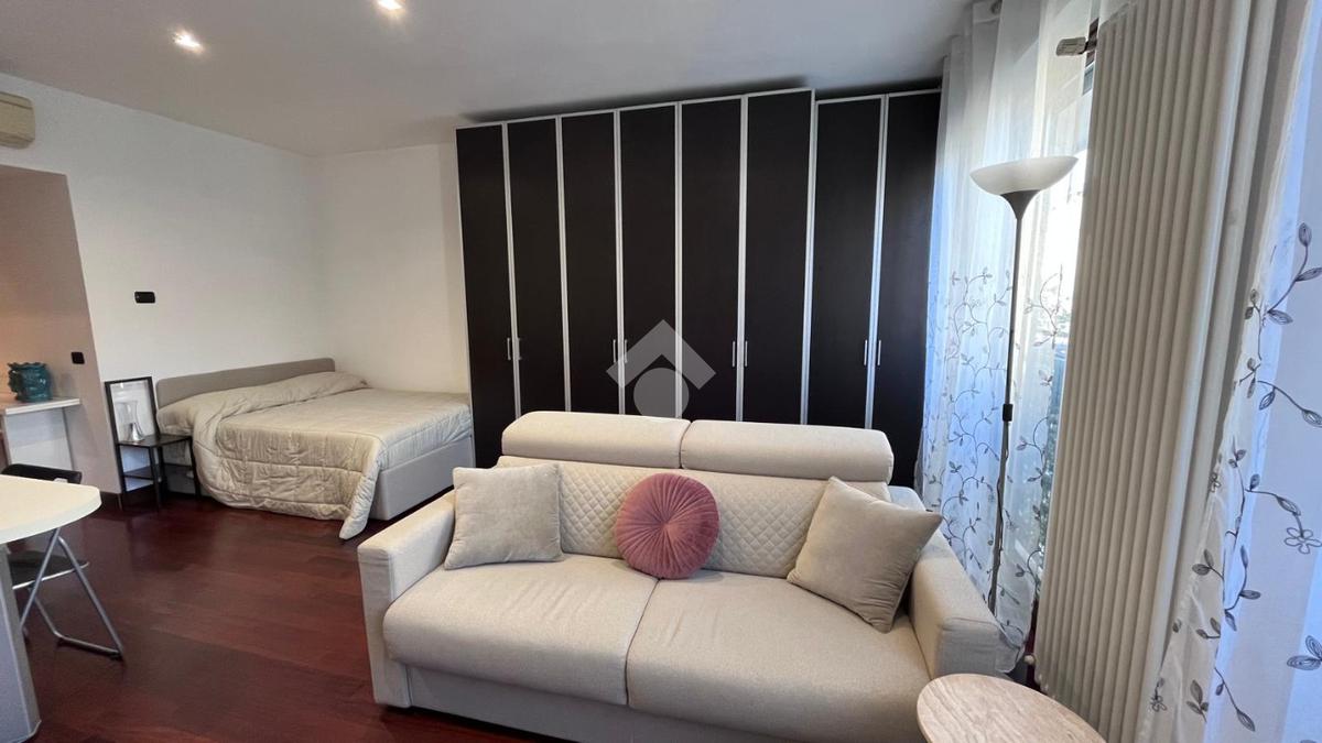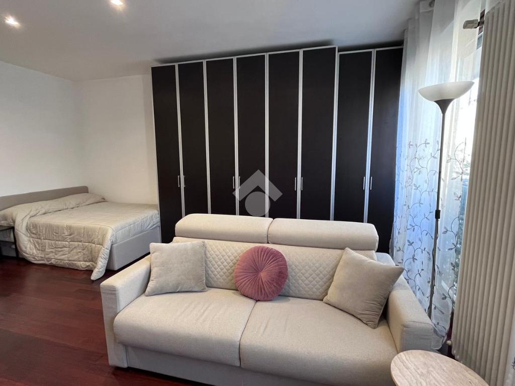 In stabile di recente costruzione, proponiamo in locazione, ad un primo piano con ascensore e servizio di portineria, un ampio monolocale ristrutturato, caratterizzato da finiture moderne e da una distribuzione degli spazi funzionale e accogliente.
