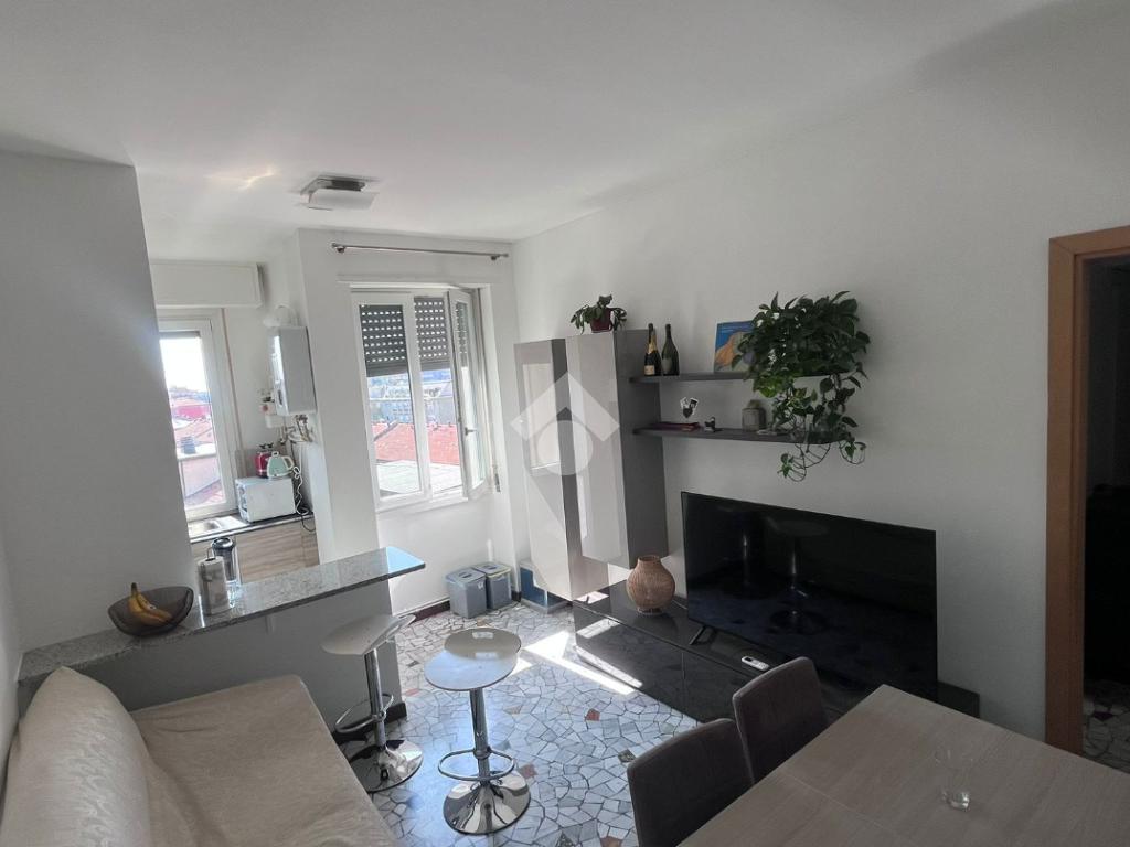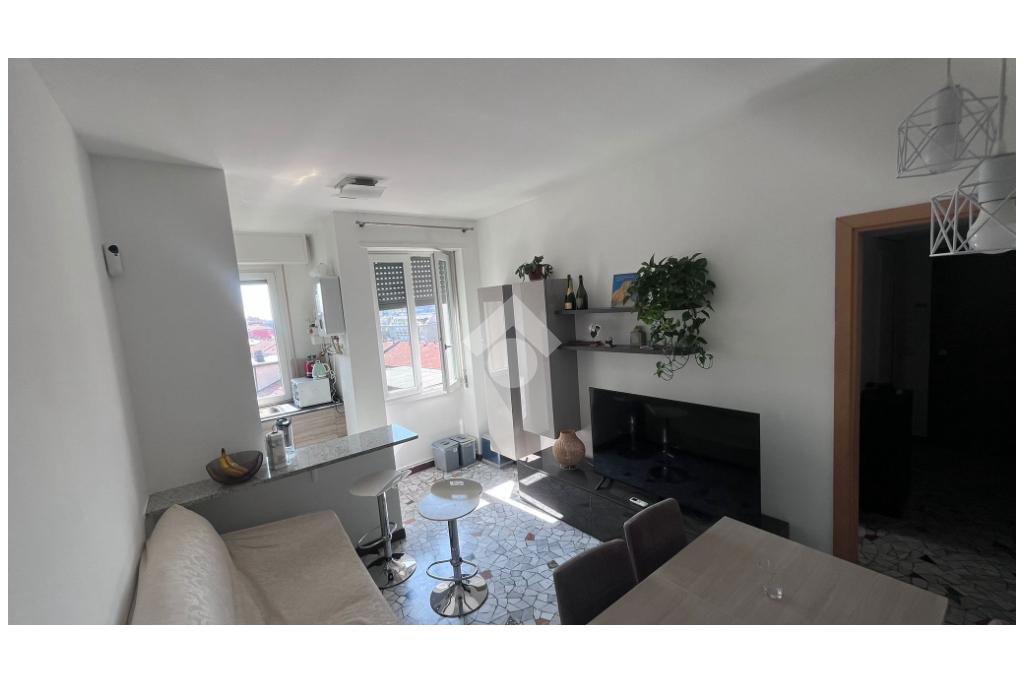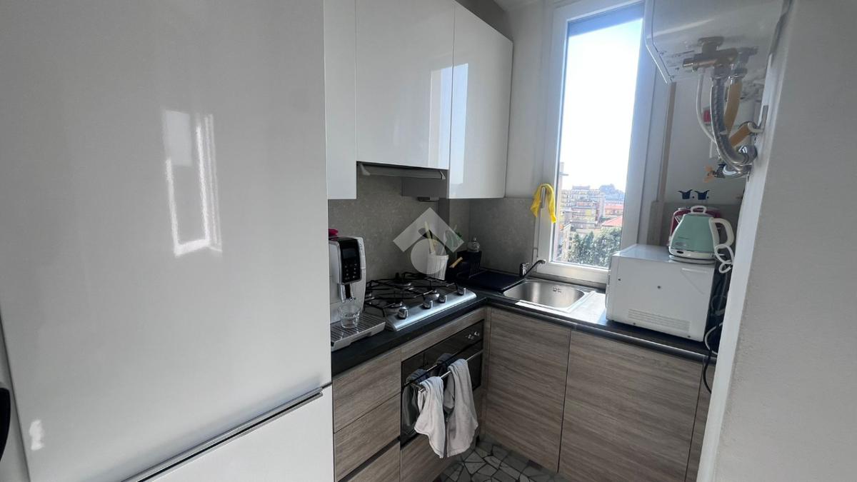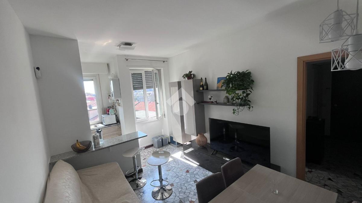 L’appartamento ha ingresso su disimpegno che porta a un luminoso soggiorno con cucina a vista, camera da letto matrimoniale con balcone e un bagno finestrato con box doccia.