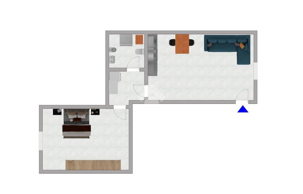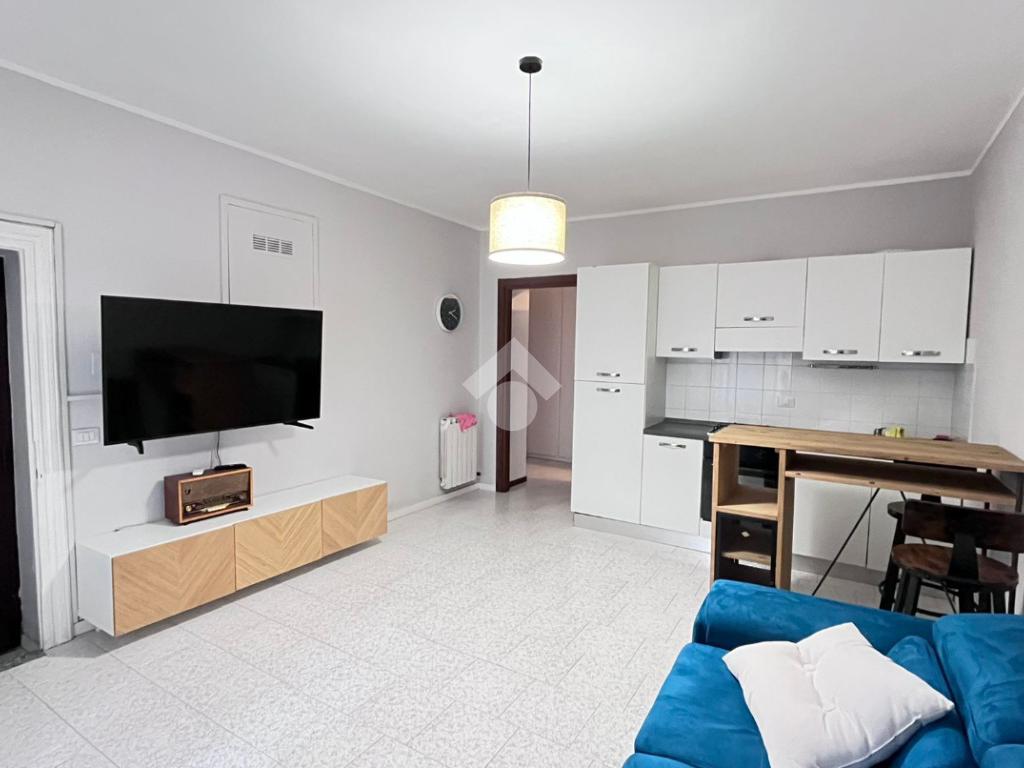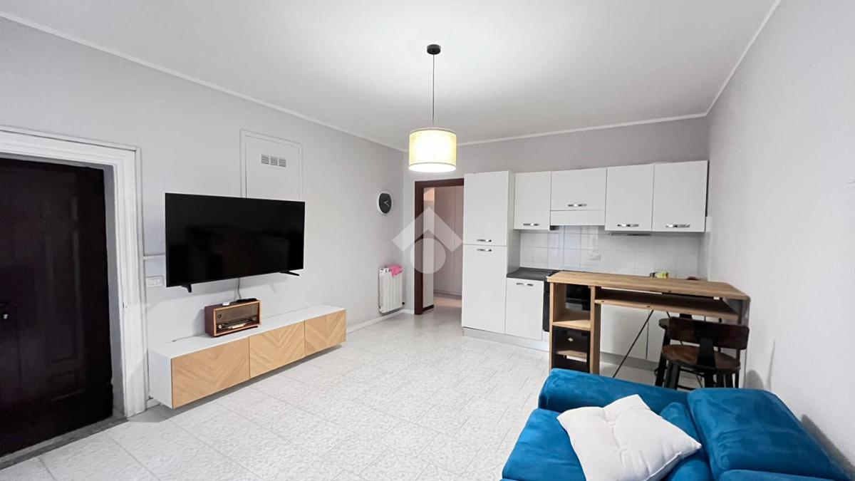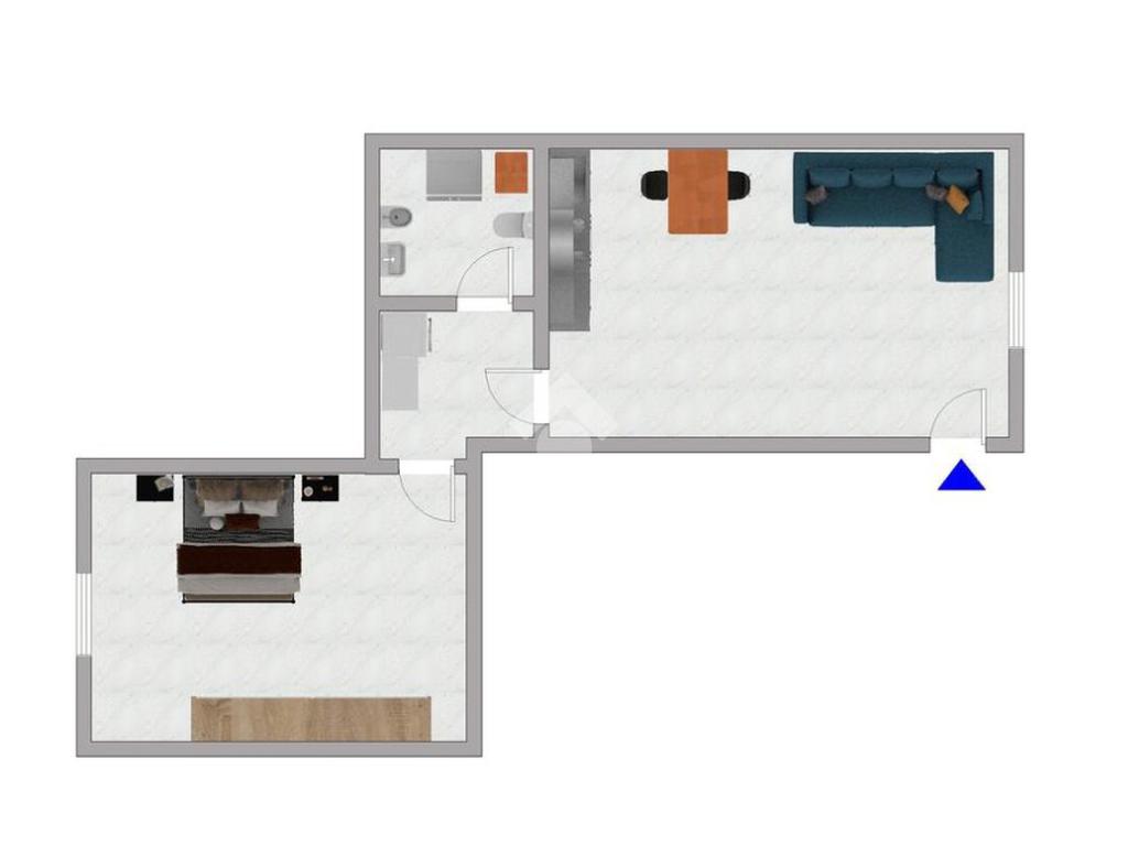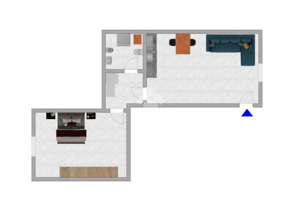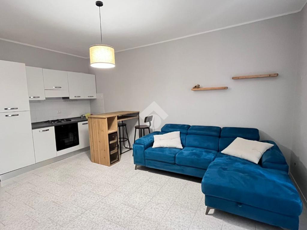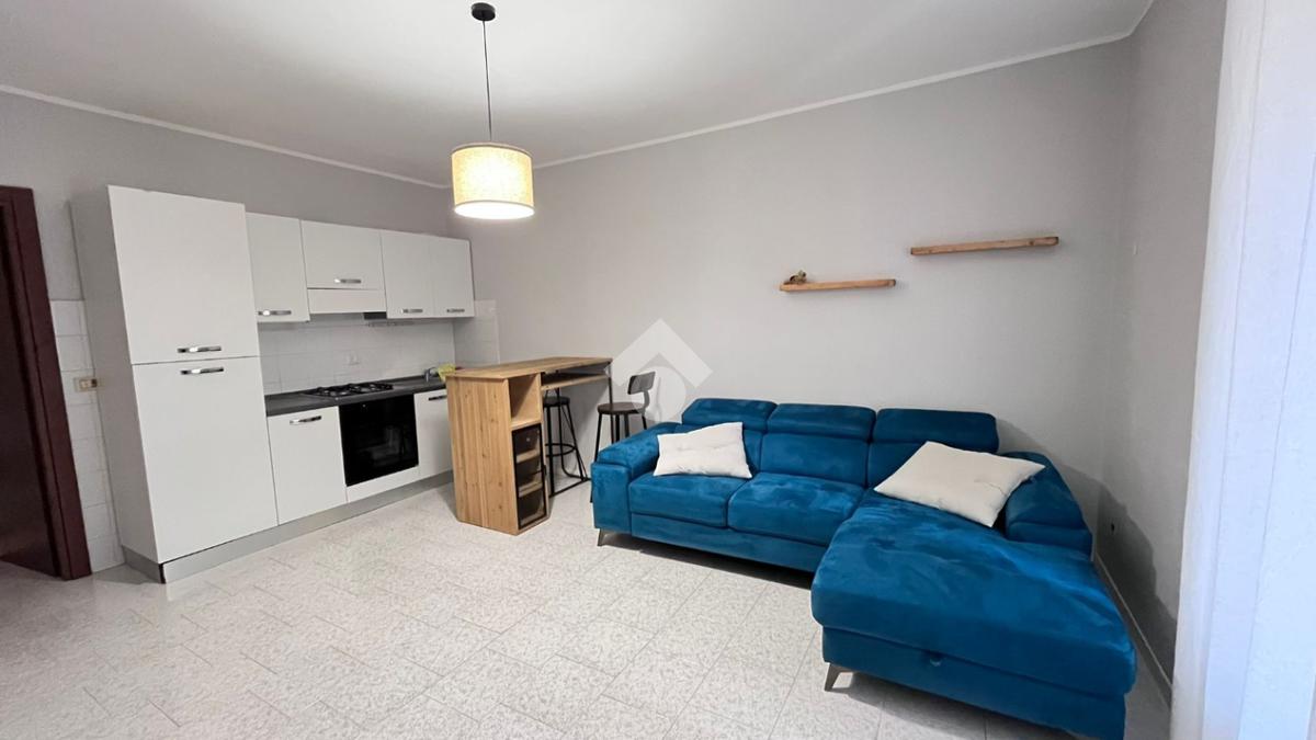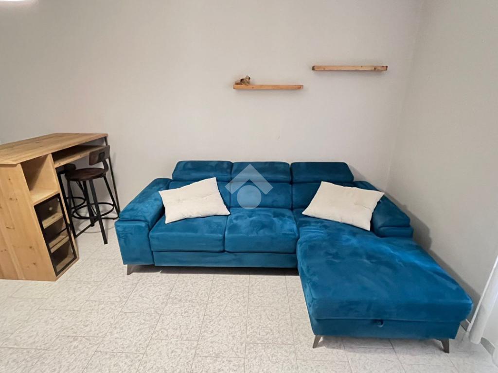 L’appartamento ha ingresso su zona giorno con cucina a vista, disimpegno, una spaziosa camera matrimoniale e un bagno con box doccia.