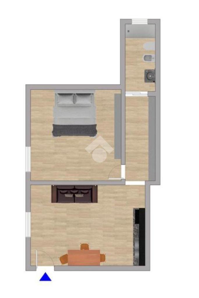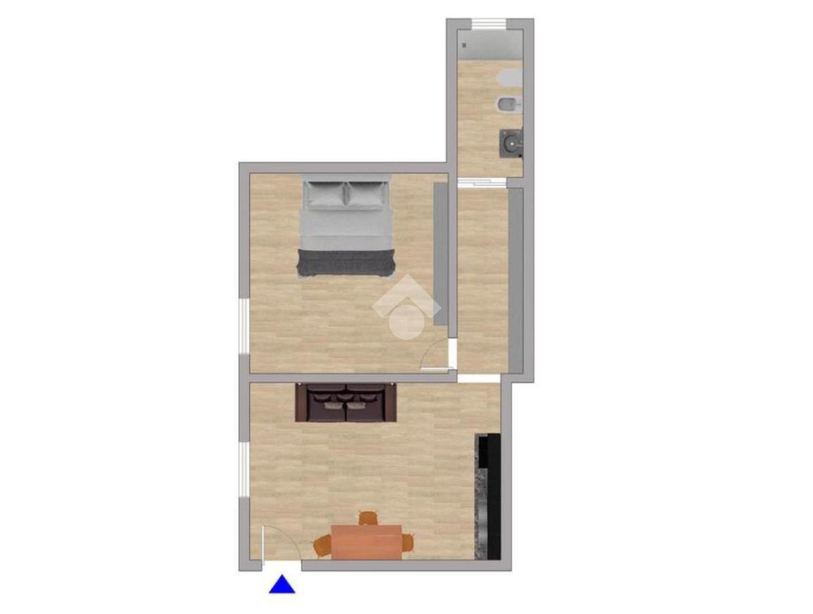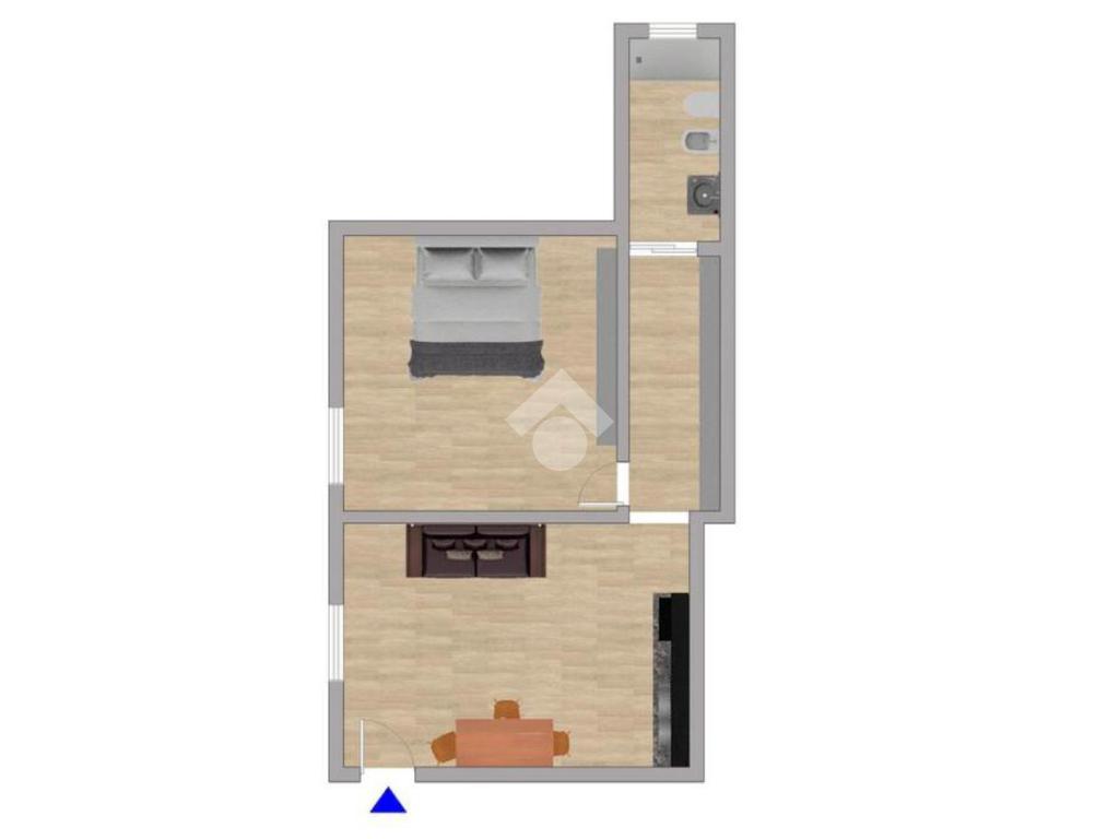 L’appartamento ha ingresso su zona giorno con cucina a vista, una spaziosa camera matrimoniale e un bagno finestrato con box doccia.