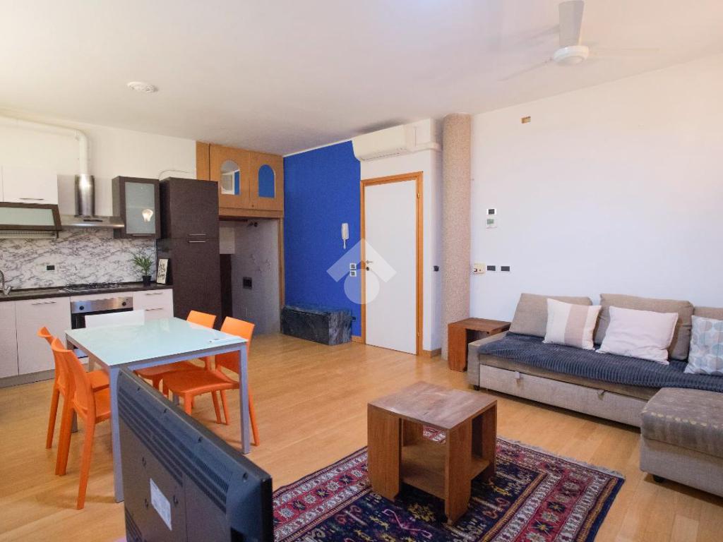 L’appartamento è composto da soggiorno con cucina a vista, luminoso e funzionale, camera matrimoniale e cameretta, entrambe con accesso diretto al balcone, e bagno con vasca.