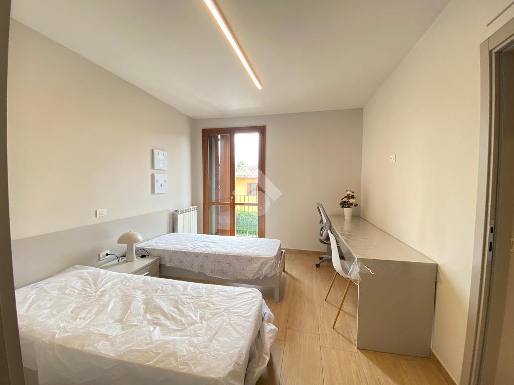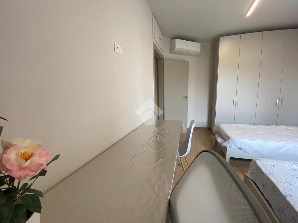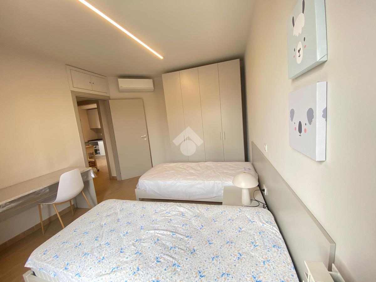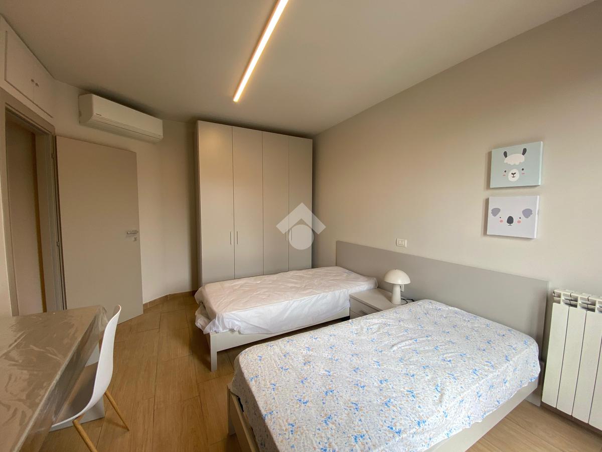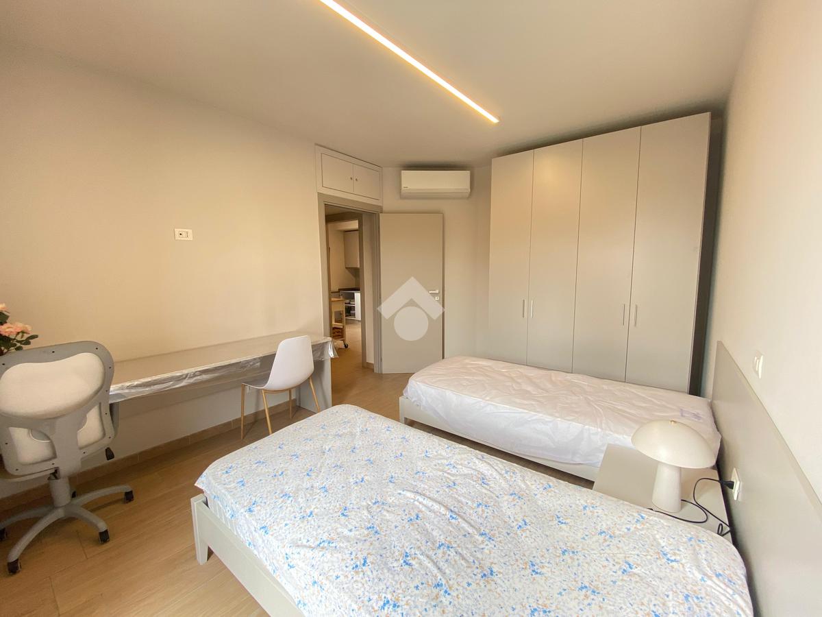 L'immobile si compone di un ingresso che si apre su un disimpegno, un luminoso soggiorno con cucina a vista e accesso al terrazzo, perfetto per momenti di relax all'aperto. La zona notte offre un'ampia camera doppia, con balconcino alla francese, che ospita due letti singoli e una comoda scrivania doppia, un' ulteriore camera singola. L' antibagno è adibito a lavanderia e il bagno è finestrato, con box doccia.