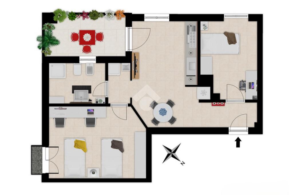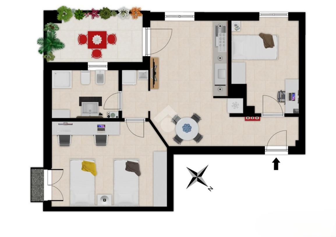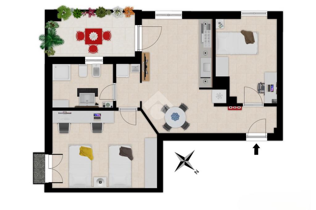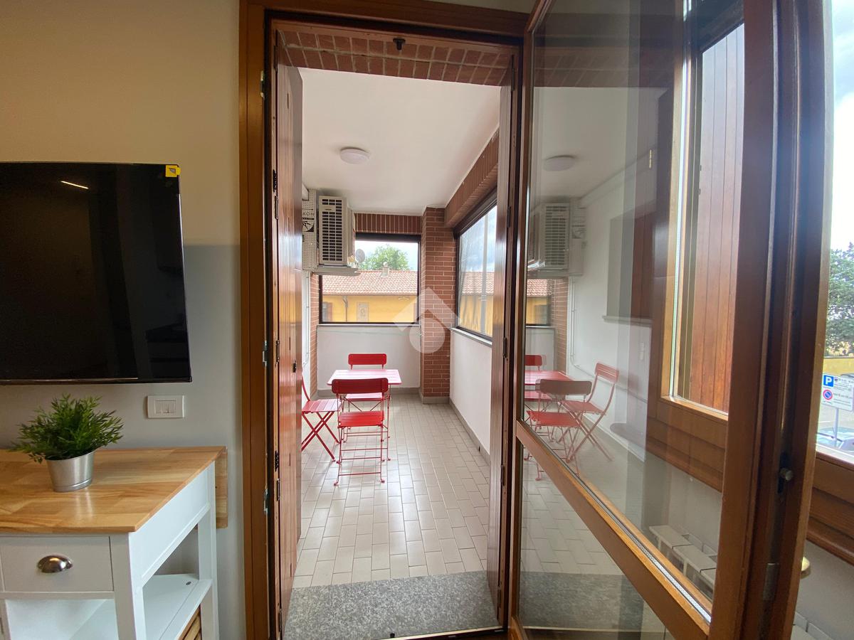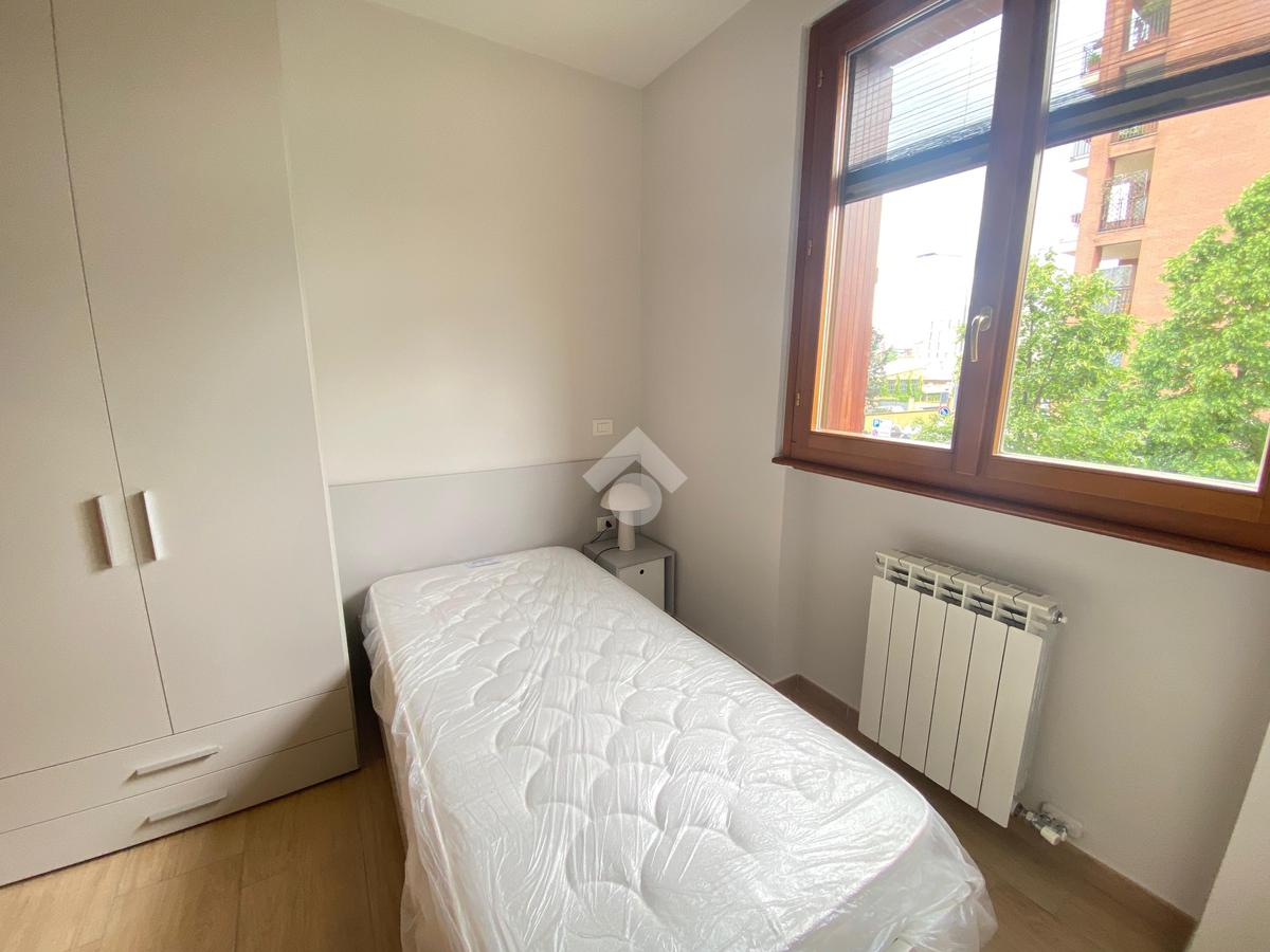 L'immobile si compone di un ingresso che si apre su un disimpegno, un luminoso soggiorno con cucina a vista e accesso al terrazzo, perfetto per momenti di relax all'aperto. La zona notte offre un'ampia camera doppia, con balconcino alla francese, che ospita due letti singoli e una comoda scrivania doppia, un' ulteriore camera singola. L' antibagno è adibito a lavanderia e il bagno è finestrato, con box doccia.