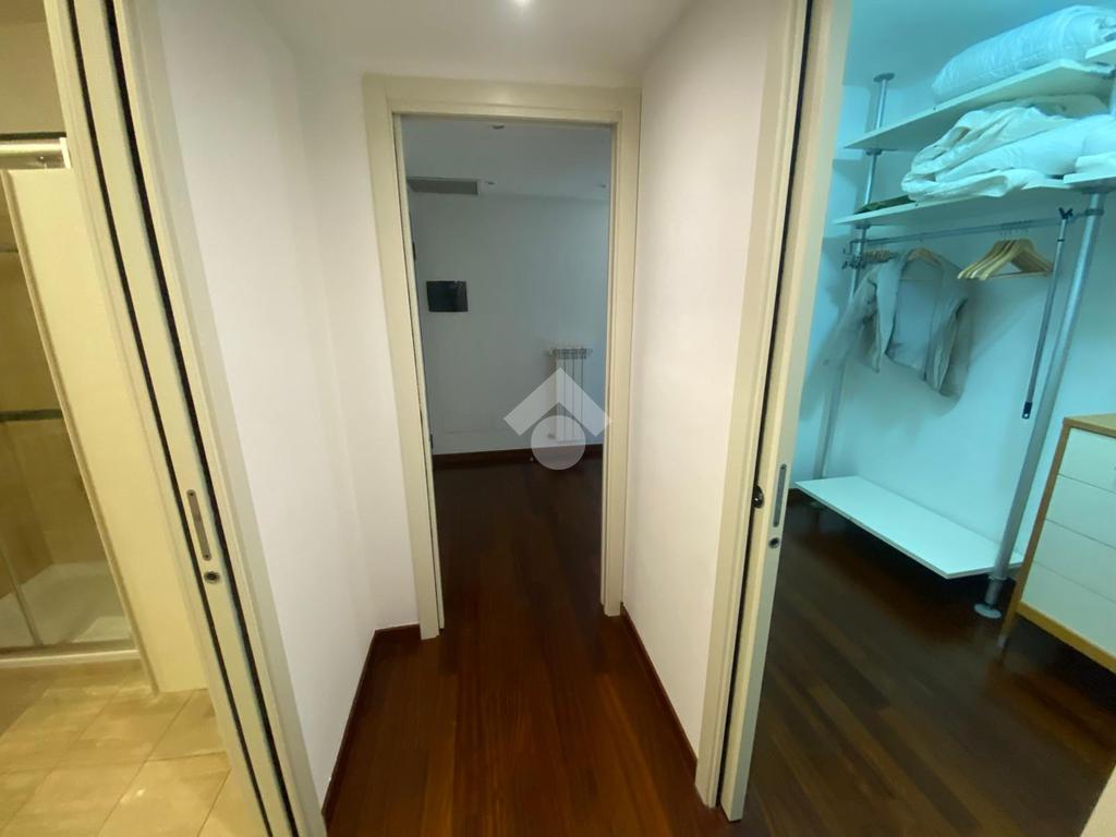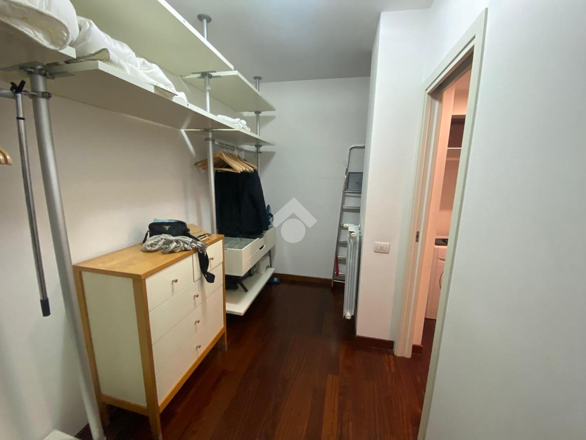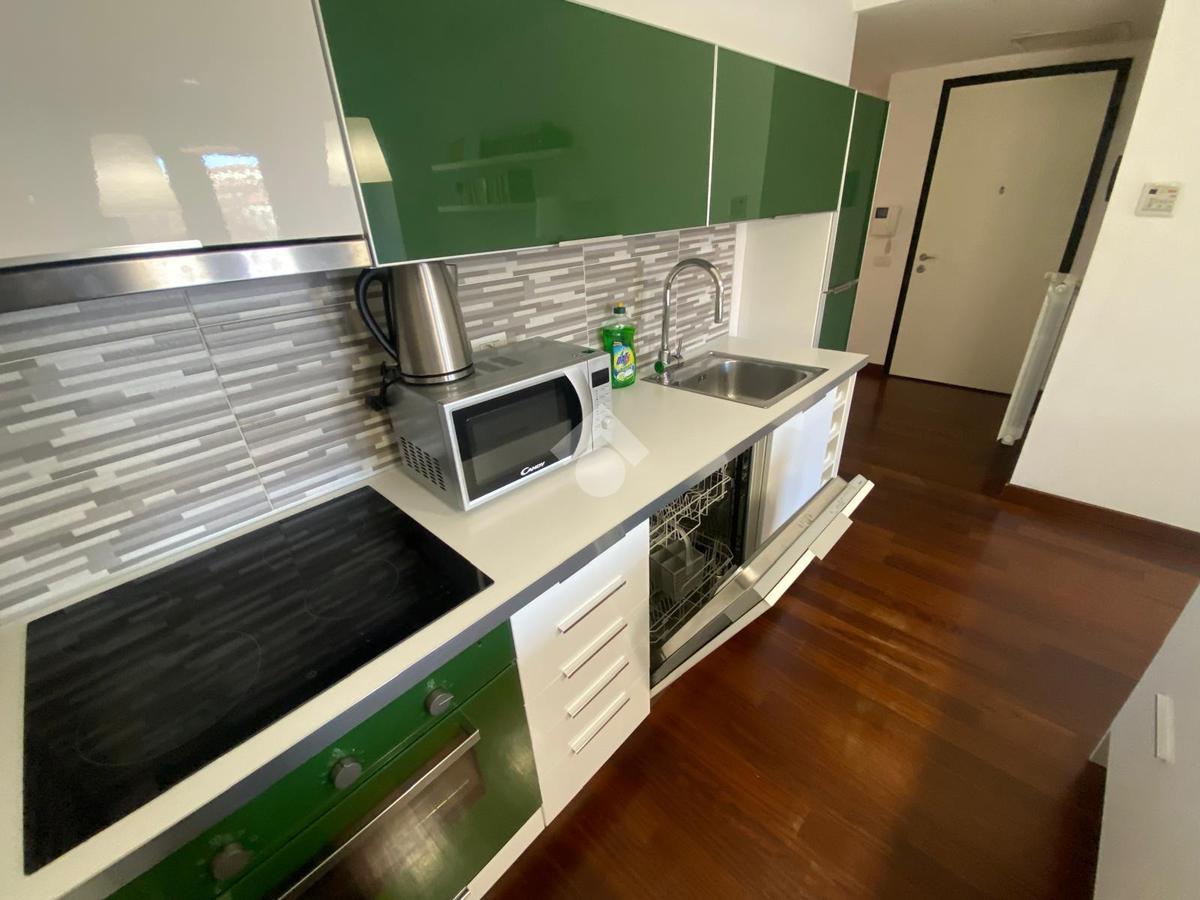 L'appartamento si compone di ingresso su disimpegno, spaziosa zona giorno/notte, cabina armadio e bagno. Due ampie porte finestre affacciano direttamente sul curato giardino condominiale, garantendo ottima luminosità e un piacevole affaccio verde.