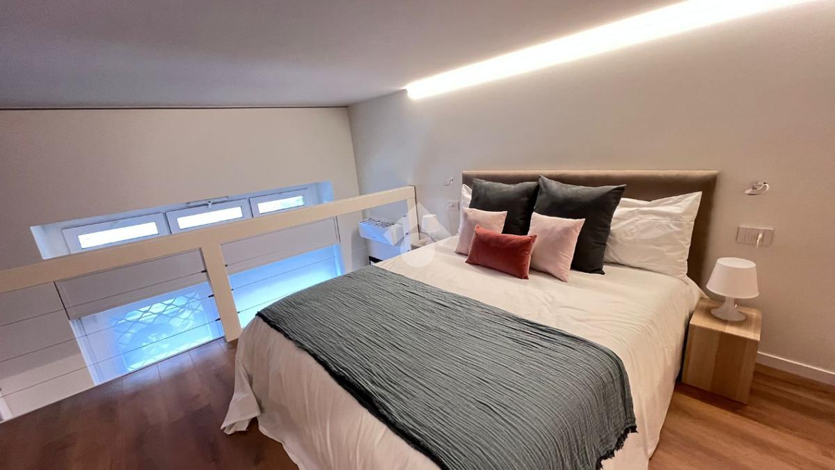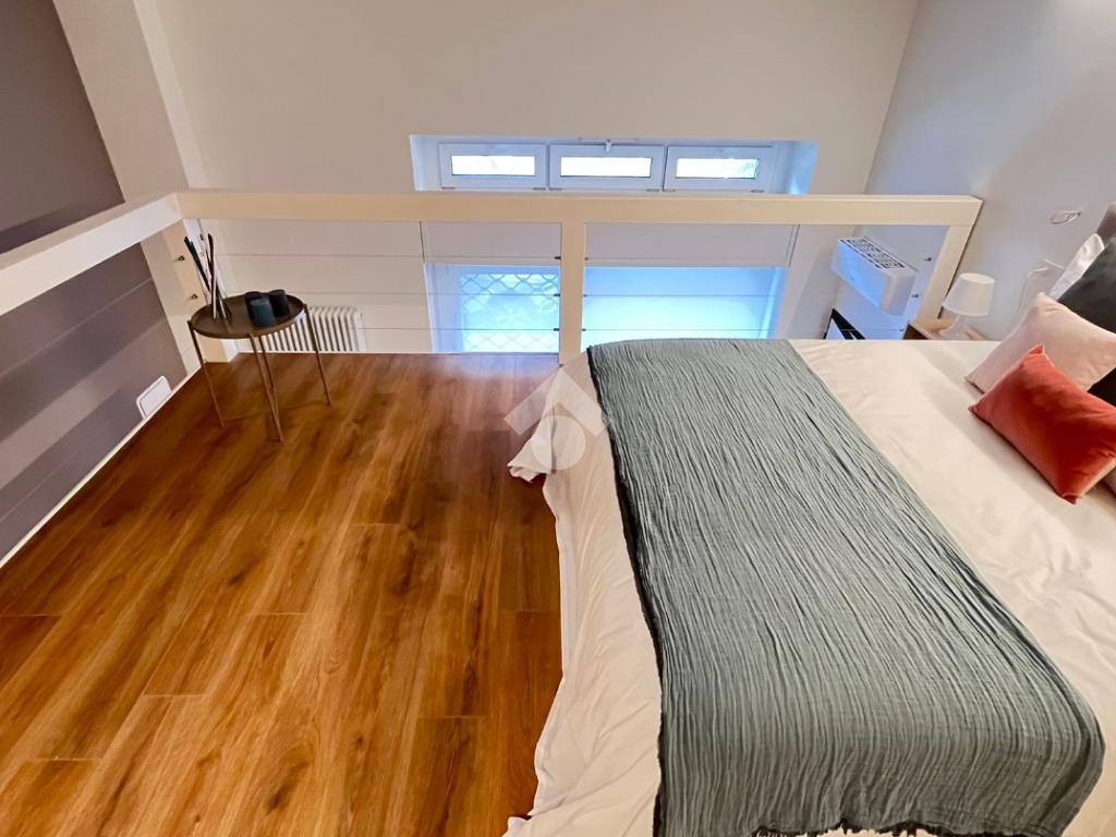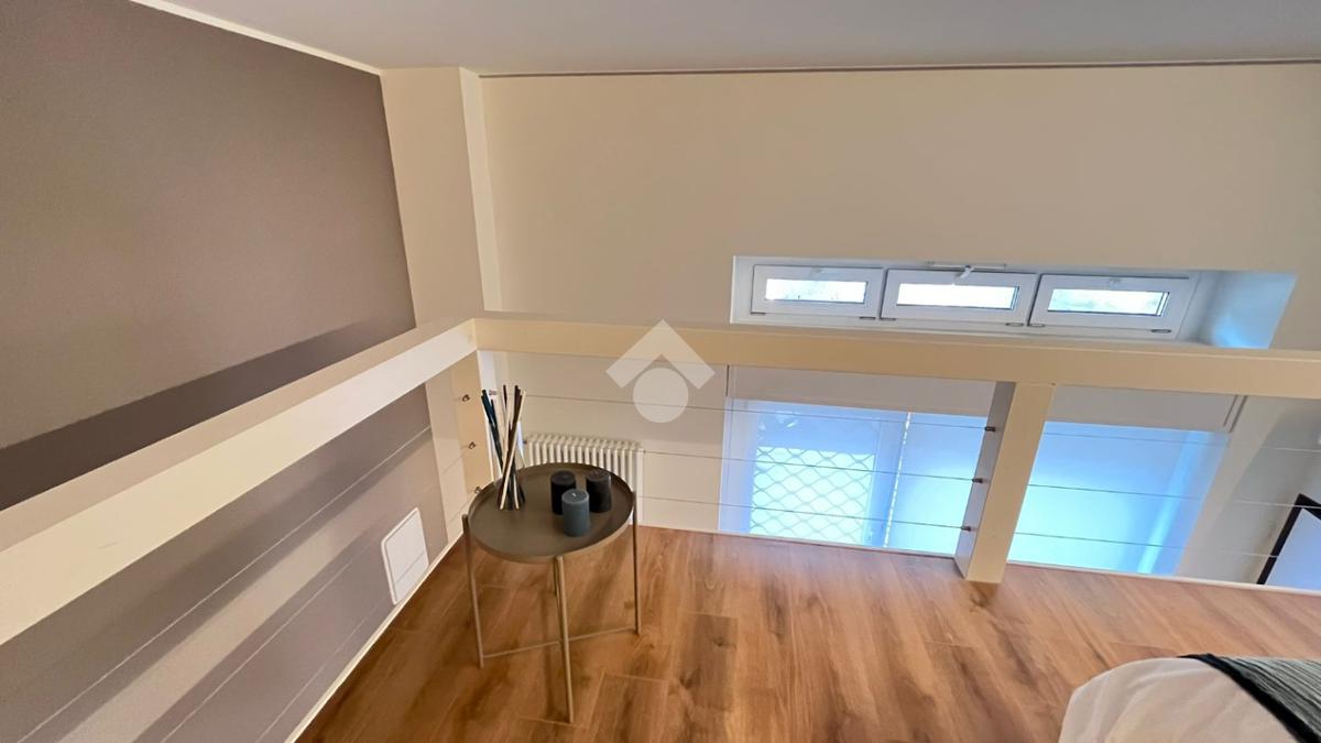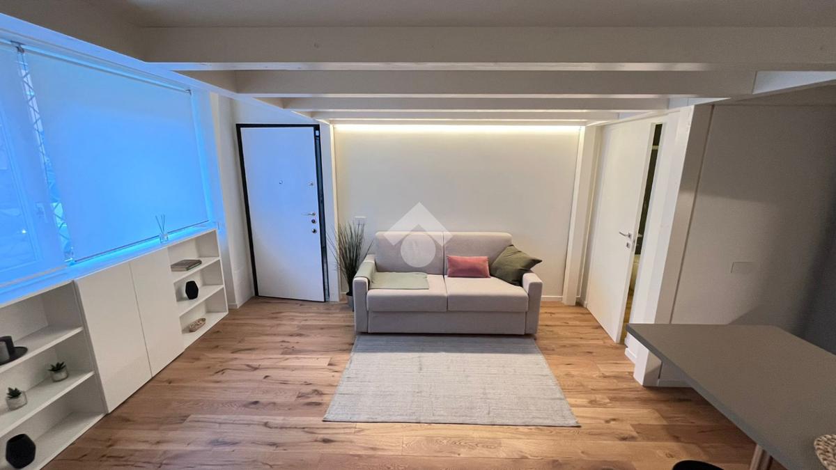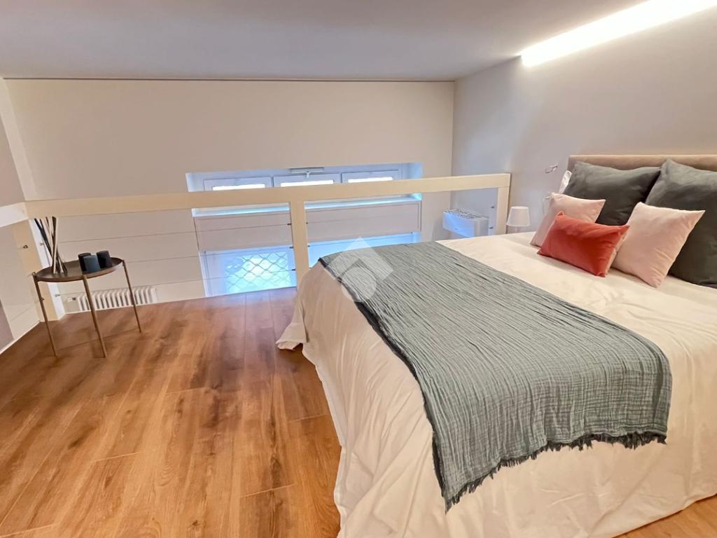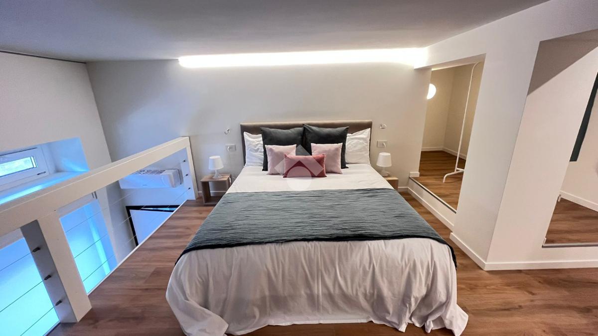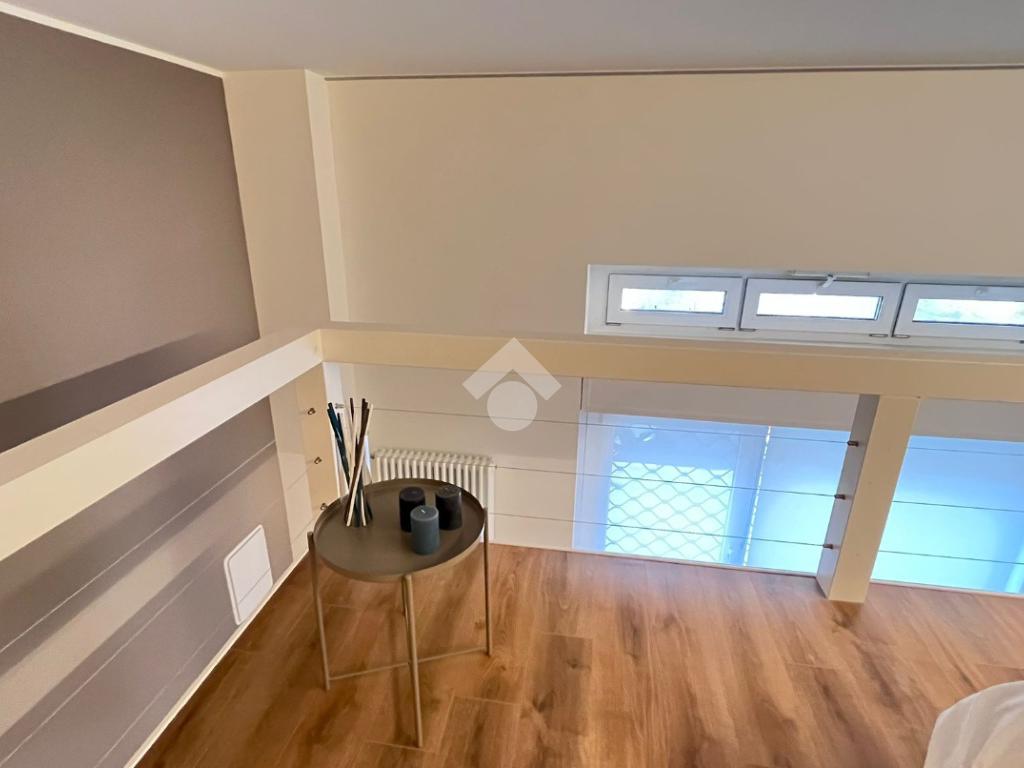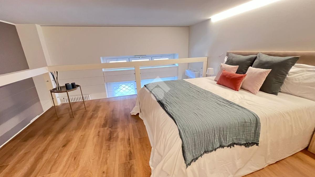 L’ingresso si apre su una luminosa zona giorno open space, illuminata da un’ampia vetrata, a cui si affianca una cucina semi-abitabile, moderna e completamente attrezzata. Il bagno è dotato di una doccia, mentre il soppalco ospita una pratica cabina armadio.