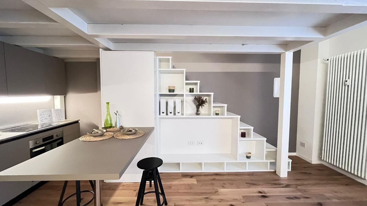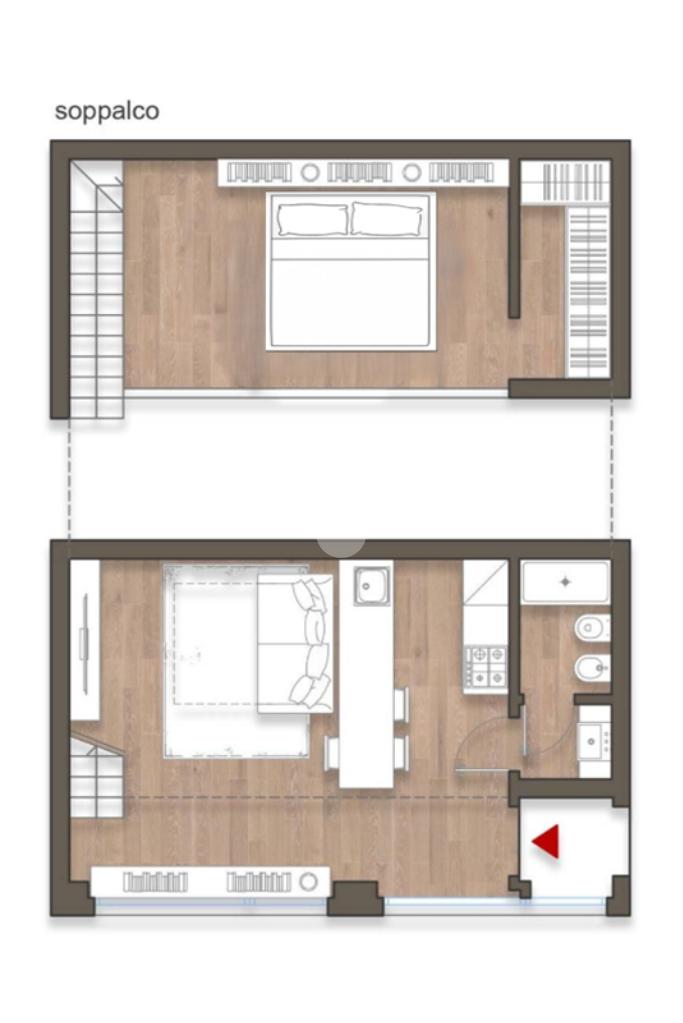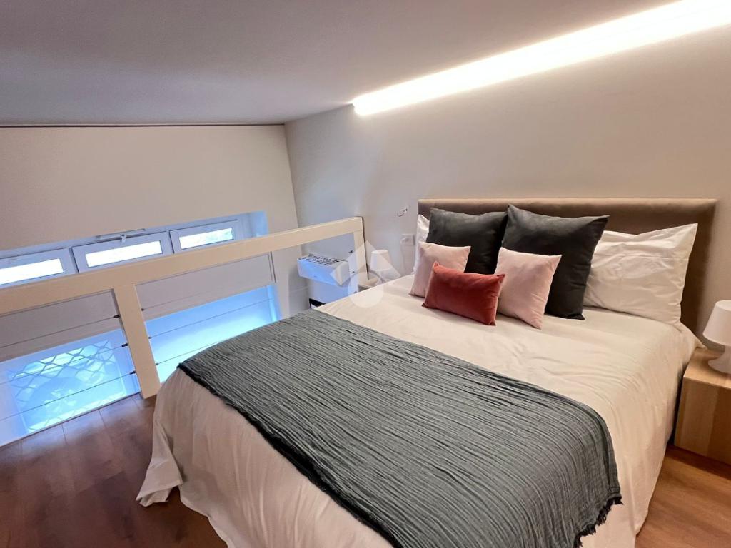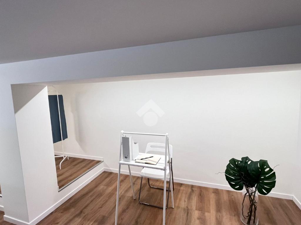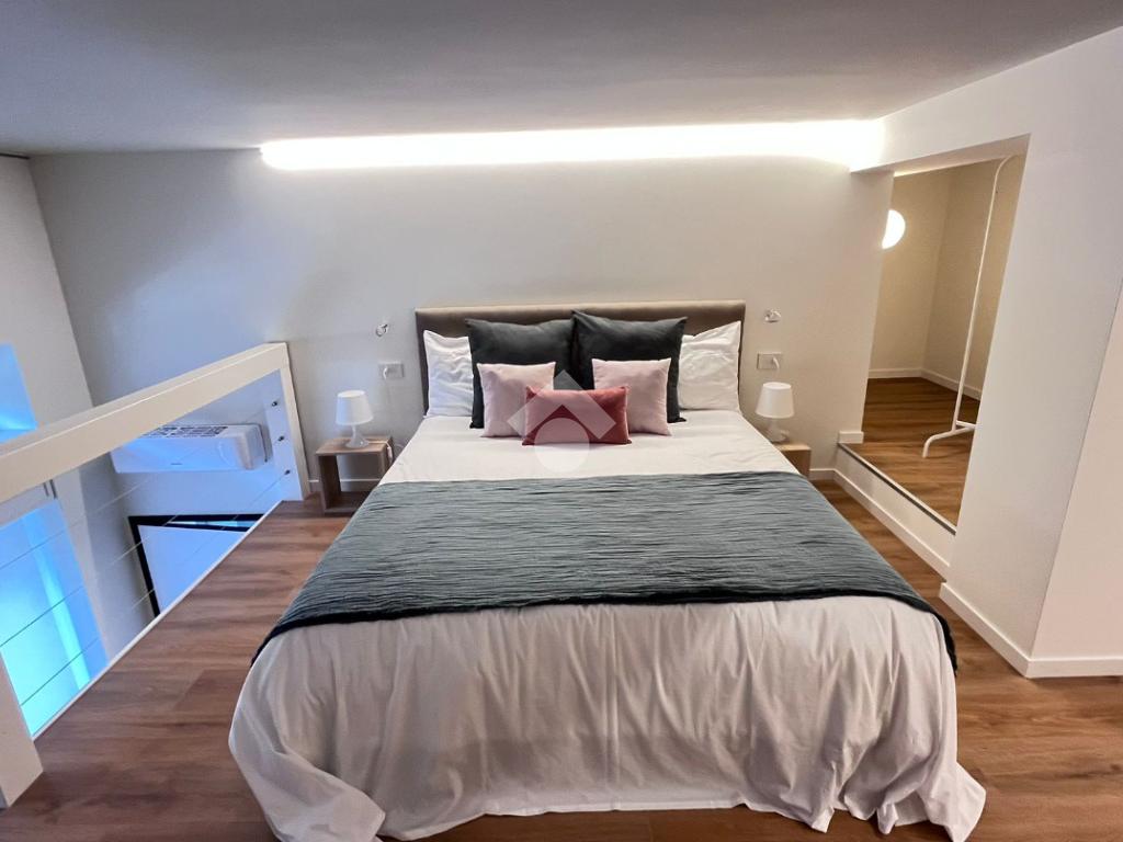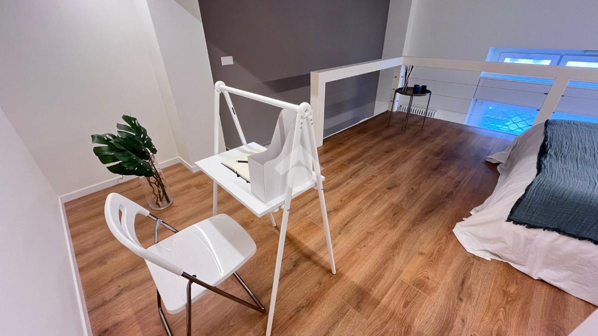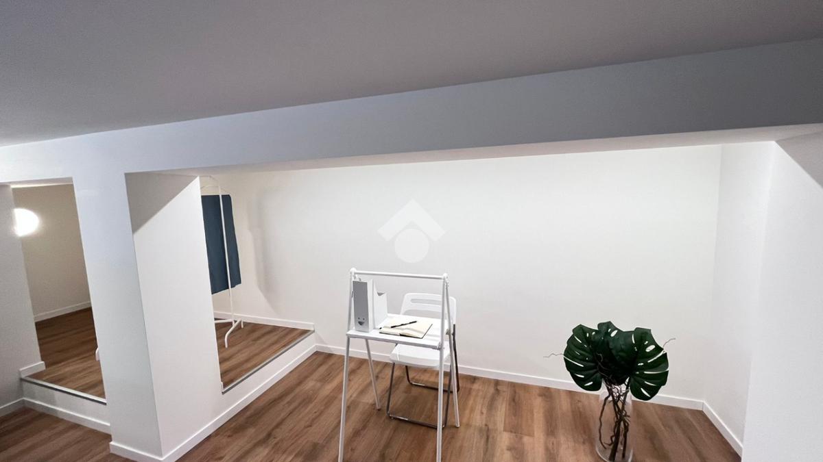 L’ingresso si apre su una luminosa zona giorno open space, illuminata da un’ampia vetrata, a cui si affianca una cucina semi-abitabile, moderna e completamente attrezzata. Il bagno è dotato di una doccia, mentre il soppalco ospita una pratica cabina armadio.