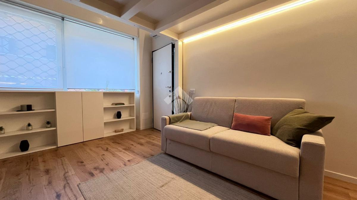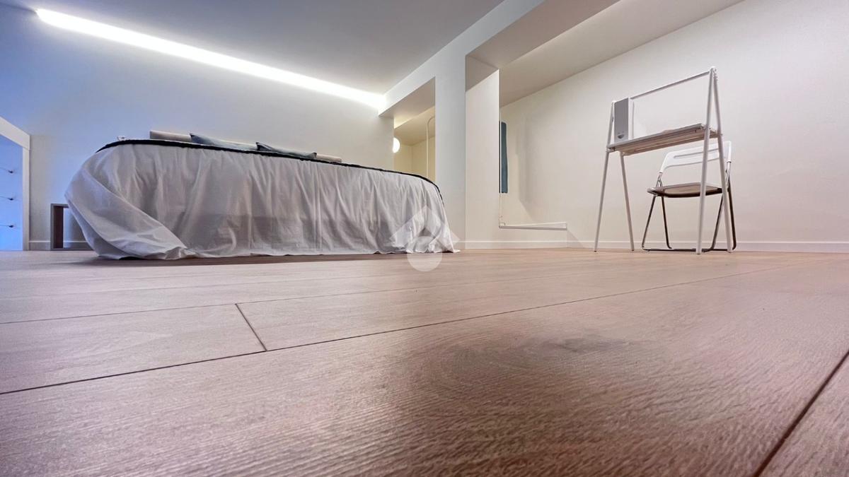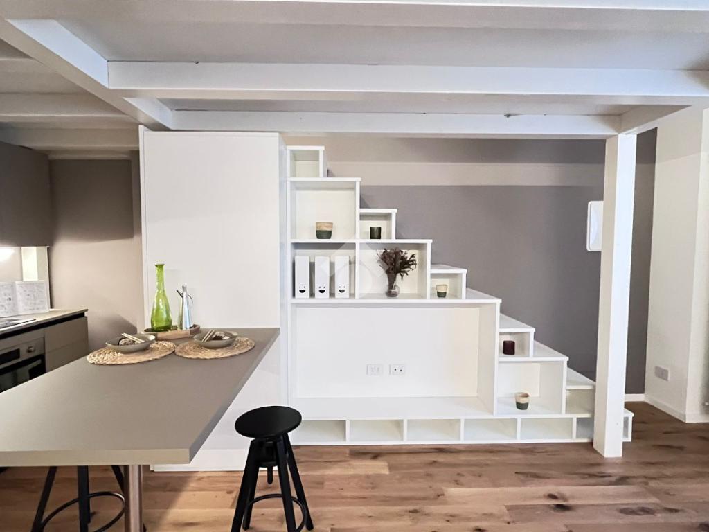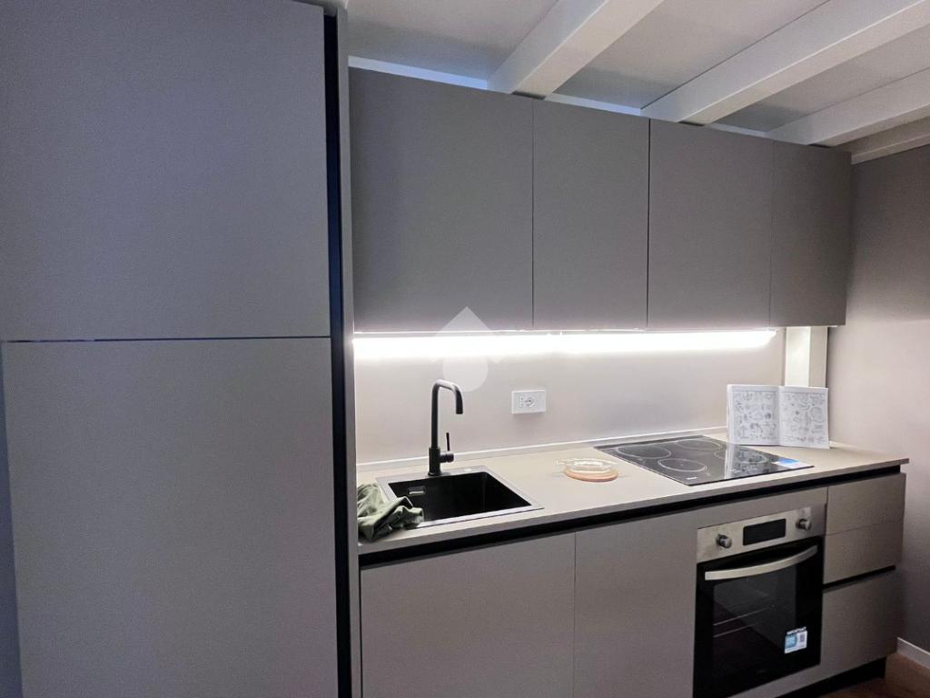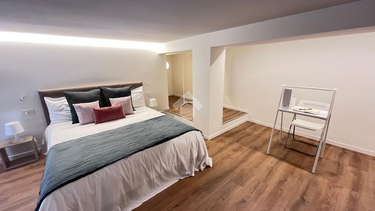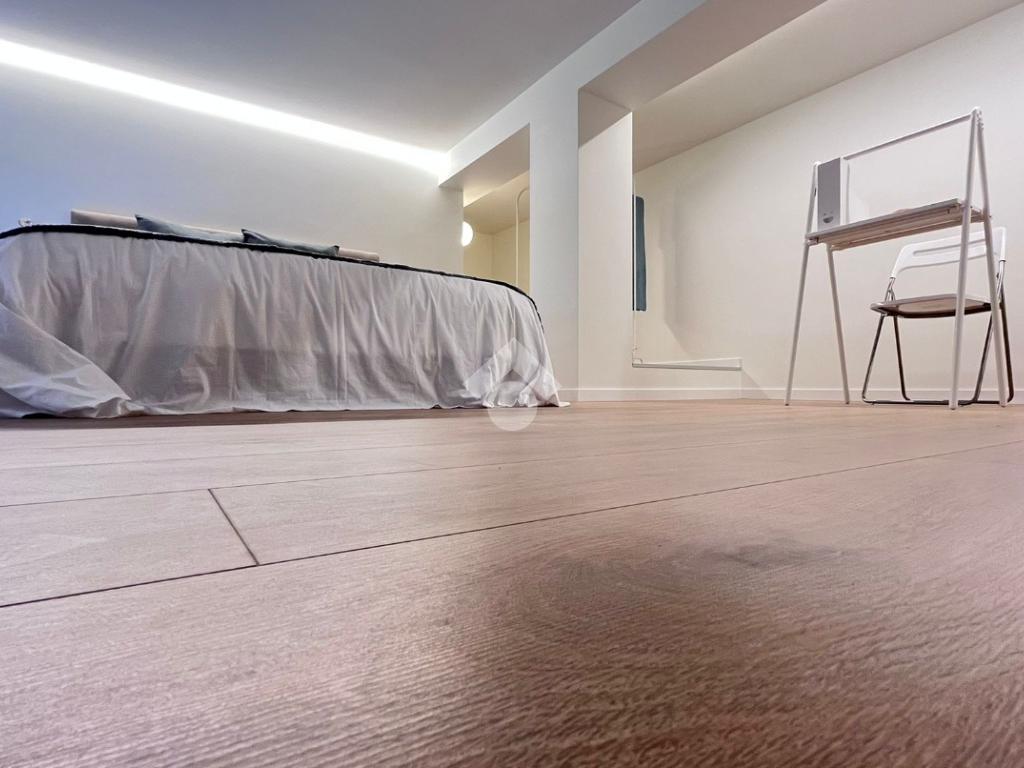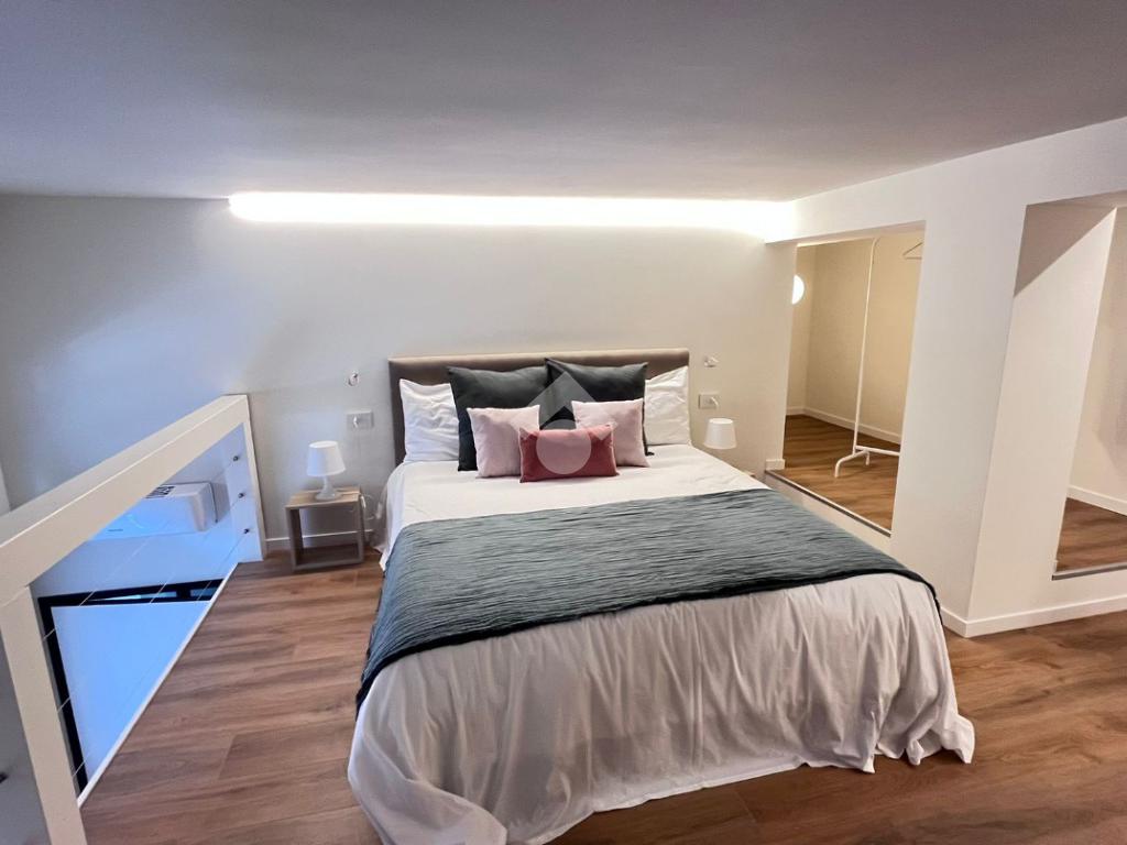 L’ingresso si apre su una luminosa zona giorno open space, illuminata da un’ampia vetrata, a cui si affianca una cucina semi-abitabile, moderna e completamente attrezzata. Il bagno è dotato di una doccia, mentre il soppalco ospita una pratica cabina armadio.