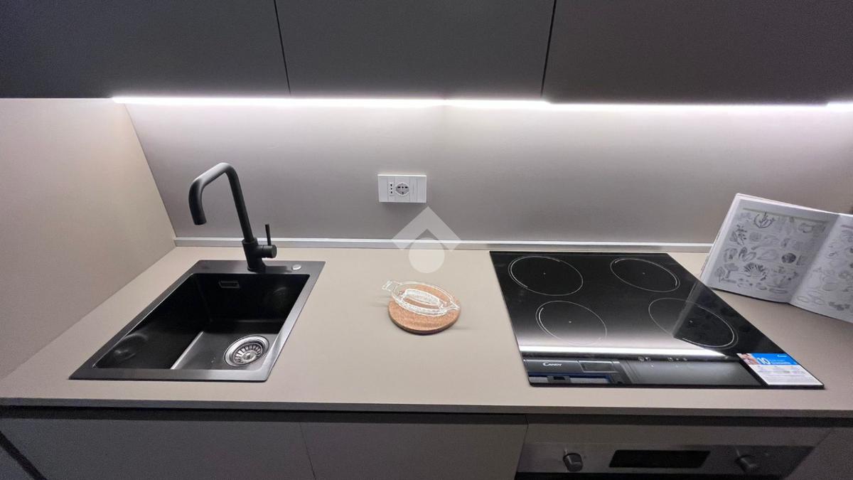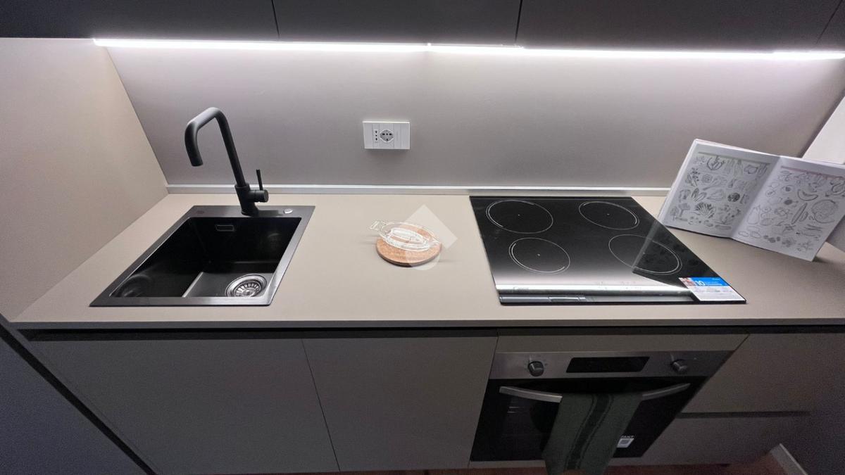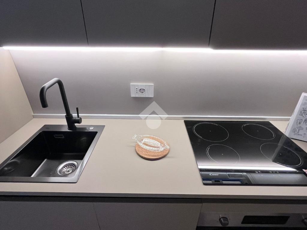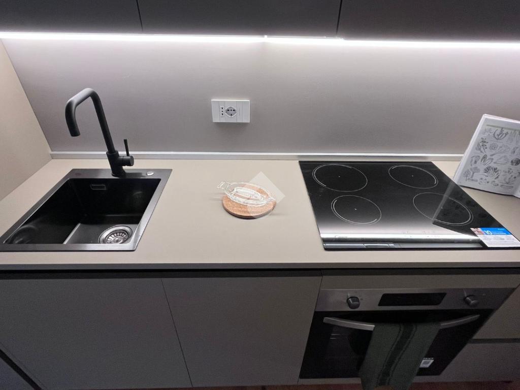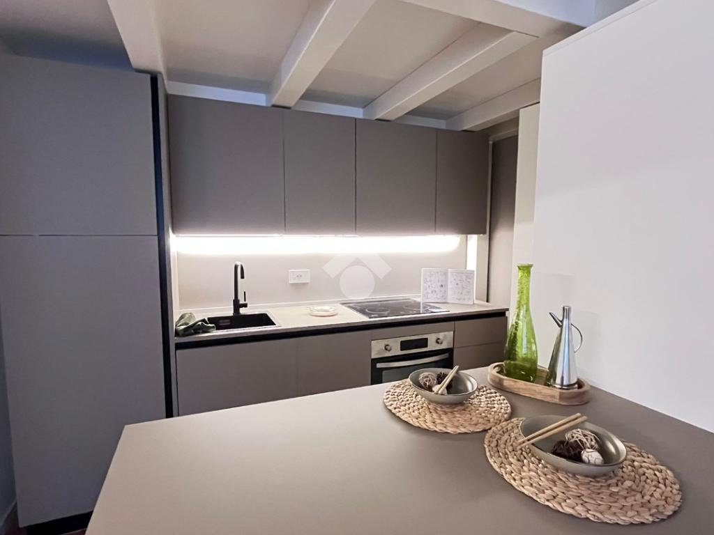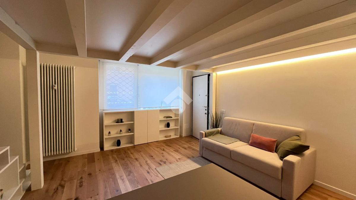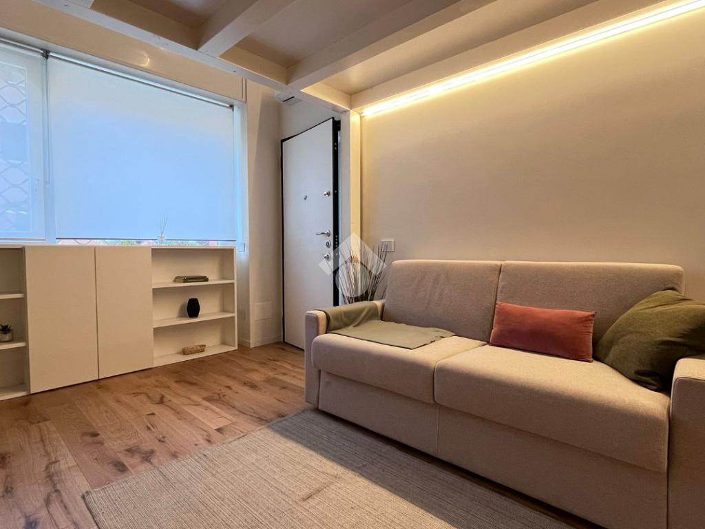 L’ingresso si apre su una luminosa zona giorno open space, illuminata da un’ampia vetrata, a cui si affianca una cucina semi-abitabile, moderna e completamente attrezzata. Il bagno è dotato di una doccia, mentre il soppalco ospita una pratica cabina armadio.